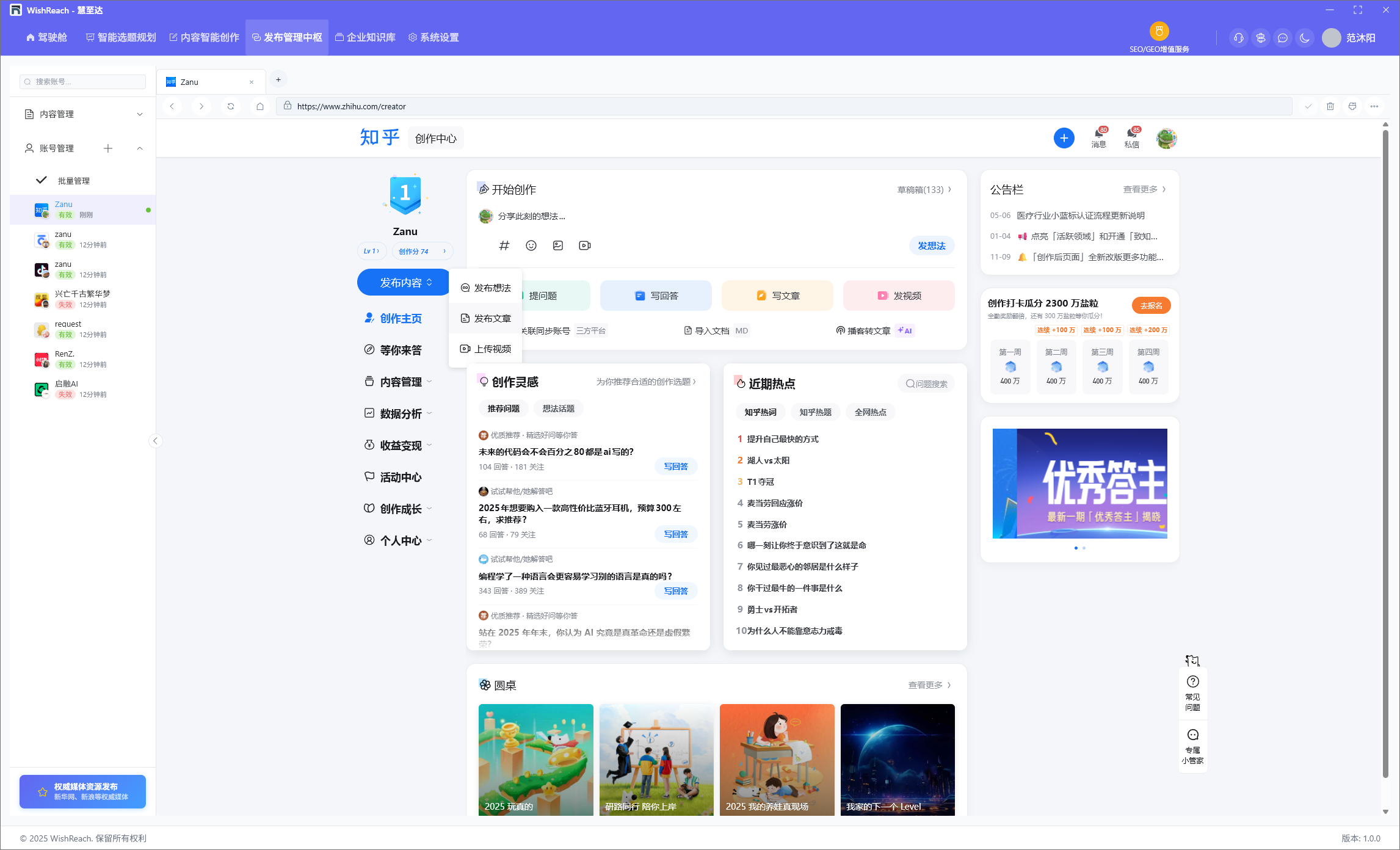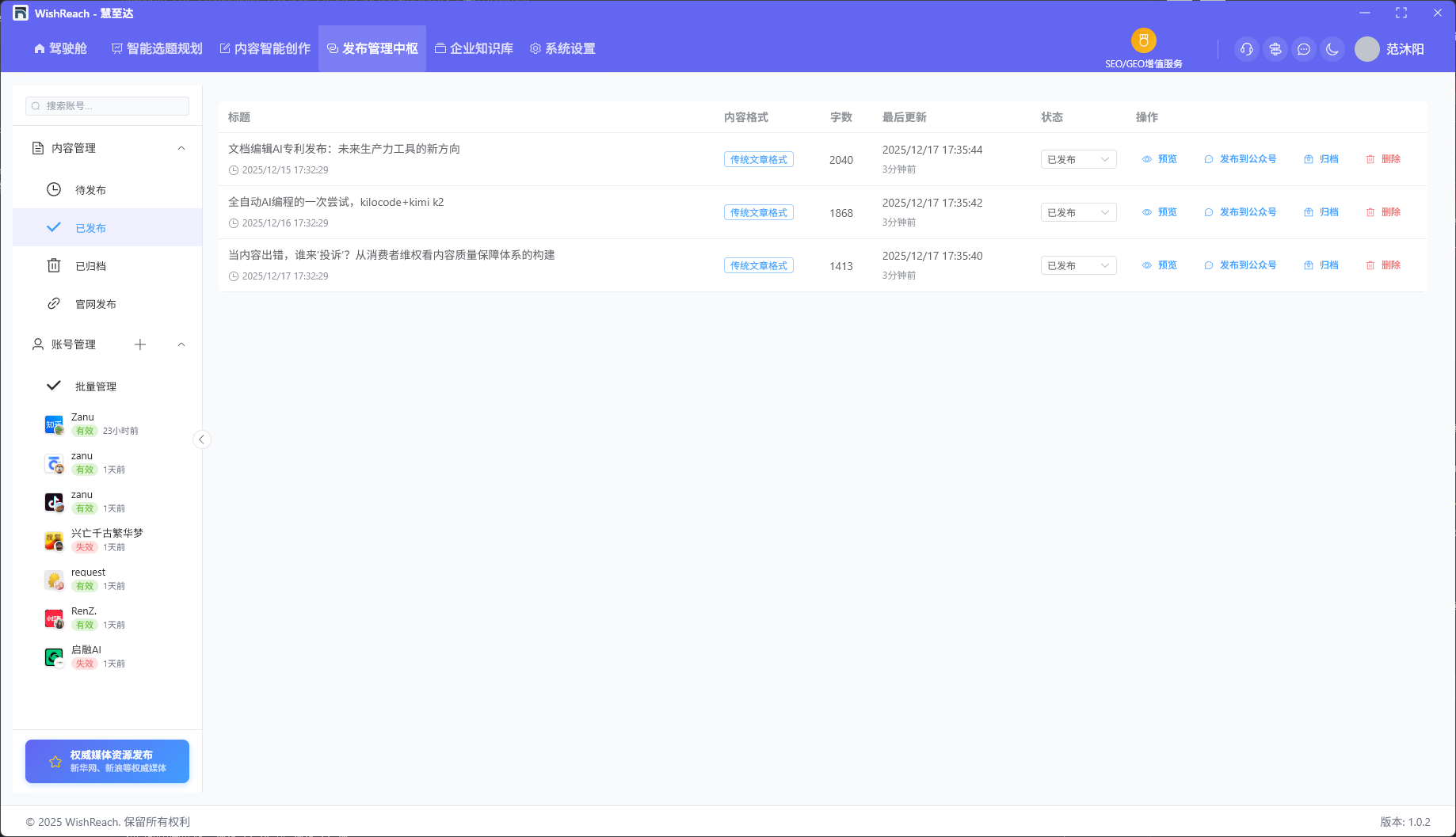 支持微信公众号、小红书、抖音、知乎等10+平台,一键发布,统一管理,节省大量时间。